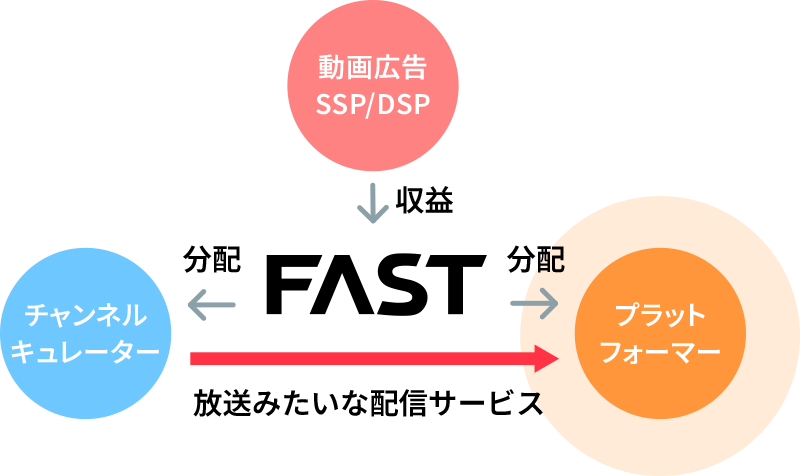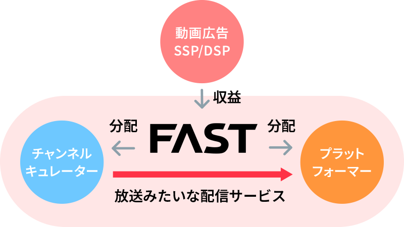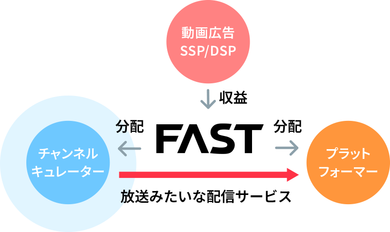 FASTchに参画いただくことで、プラットフォーマー様が保有されているユーザに対して、様々な利便性を提供いただけるようになります。また提供手段としては、「TVアプリ」「スマートフォンアプリ」「専用のTV Stick」など、多様なデバイスをご検討いただけます。